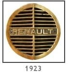 En 1923 y después de un cambio de nombre a Sociètè Anonime des Usines Renault el logo que se instalaba en los autos, era una parrilla redonda con la palabra Renault en el centro. Cumpliendo con la norma de llevar el pito tras de este emblema. Para facilitar la ubicación en la parte delantera con el tiempo fue reviviendo modificaciones, acentuando los ángulos hasta llegar a un diamante con la palabra Renault en el medio. En 1925 fue incorporado en todos los autos.