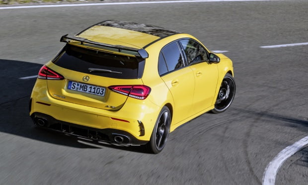 Unos paragolpes con diseño normalmente agresivo, extensiones en la parte baja, un alerón trasero que imprime una línea aerodinámica, un difusor de aire de grandes dimensiones, doble salida de escape y unas llantas de 18 pulgadas. A todo esto se une el color amarillo de la carrocería, exclusivo de esta variante AMG que nada tiene que envidiar al anterior A45. Una evolución a la deportividad notable en un kit de carrocería tipo Racing.