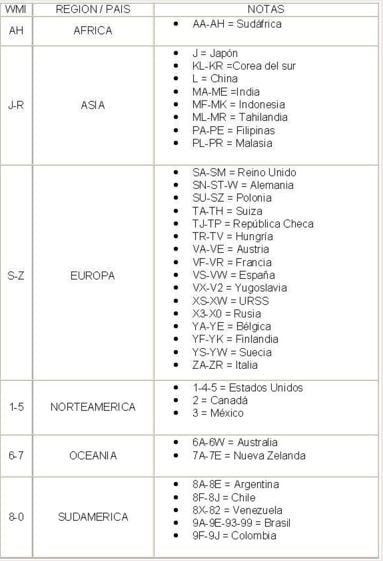 Colombia: 9F - 9K // Paraguay: 9L - 9R // Uruguay: 9S - 9W // Trinidad y Tobago: 9X - 92 // Costa Rica: 3X - 37