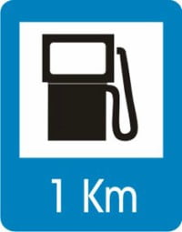 Informa a los usuarios que más adelante hay una estación de servicio para tanquear el carro o la moto.