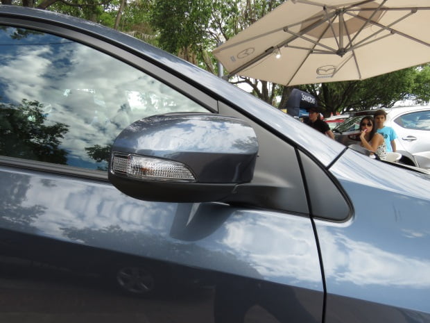 La apariencia exterior desde la parte lateral es atlética, se ve más largo de lo que realmente es, gracias a sus líneas asimétricas, en la parte posterior un excelente baúl, las luces de stop son de multireflectores y un tercer stop para una mejor percepción lumínica y de seguridad, está montado sobre cuatro ruedas de 16 pulgadas, rines en aleación y llantas de perfil bajo.