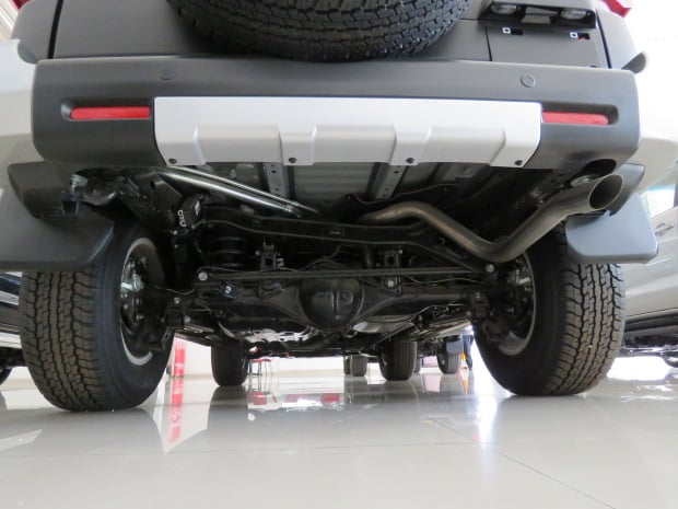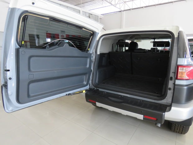 Estribos laterales plásticos de lujo originales para facilitar el acceso al interior, los espejos de color aluminio angulares que integran unas luces antiniebla. El aspecto exterior es el de un campero de dos puertas que le da un aspecto deportivo, pero cuenta con unas semi puertas traseras de apertura inversa o como las llaman en el mundo automotriz puertas suicidas.